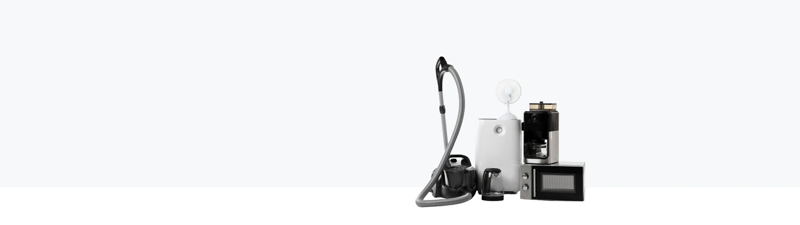 Imagen de varios electrodomésticos de hogar en grupo, representando las subastas online de electrodomésticos de John Pye.